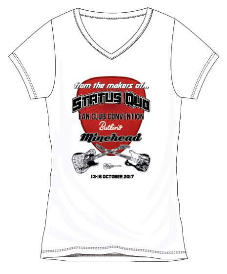 2017 Convention Womens T-Shirt White with Red Plectrum